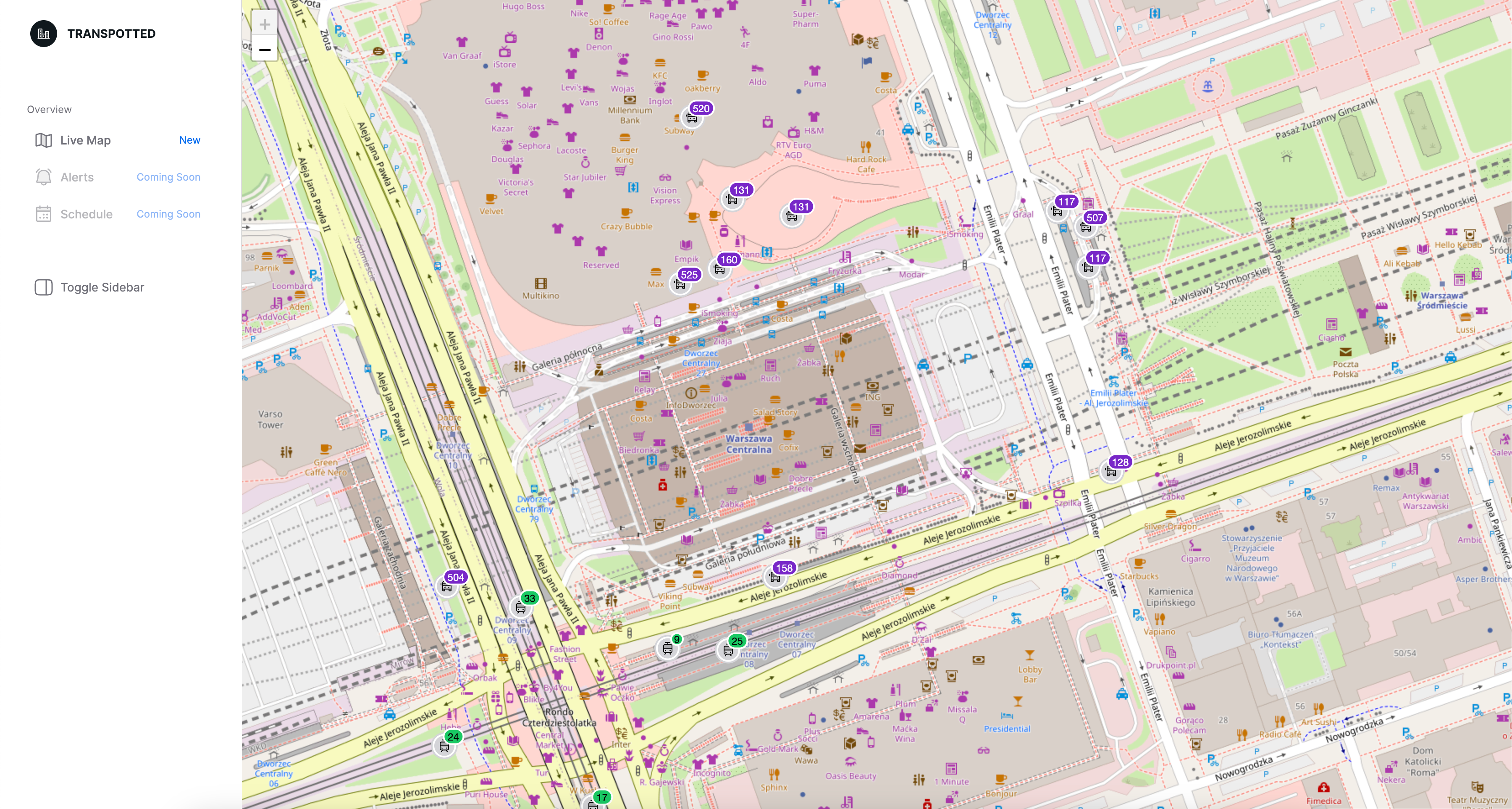 Real-time data processing is a cornerstone of Transpotted. The application relies on the Warsaw Public Transport API, which provides updates on the positions of buses and trams every 10 seconds. This data is processed and displayed to ensure accuracy and reliability.